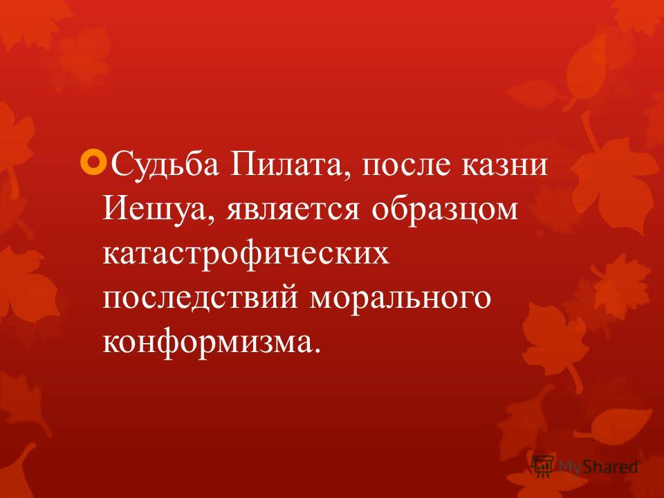 Судьба Пилата, после казни Иешуа, является образцом катастрофических последствий морального конформизма.