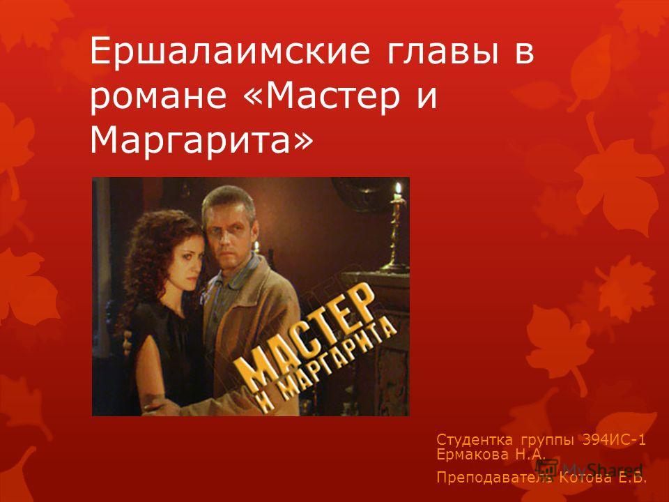 Презентация на тему: » Ершалаимские главы в романе «Мастер и Маргарита» Студентка группы 394ИС-1 Ермакова Н.А. Преподаватель Котова Е.В.» — Транскрипт: