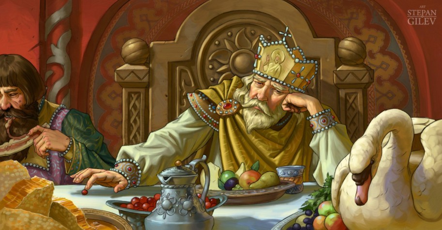 Пленник выпил вино и засвистел. Да так громко, что все, кто был рядом, попадали замертво. Даже князь чудом спасся, закутавшись в шубу. Увидев такое дело, богатырь разозлился на пленника, вывез его в поле и отрубил ему голову.