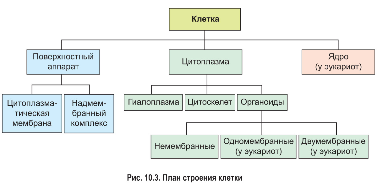 Основными структурными компонентами клеток являются поверхностный аппарат, цитоплазма, а у эукариот также ядро (рис. 10.3, 10.4).