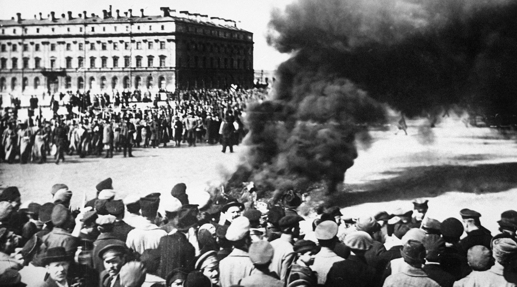 - Демонстранты сжигают символы старого строя на Марсовом поле, 1918 год