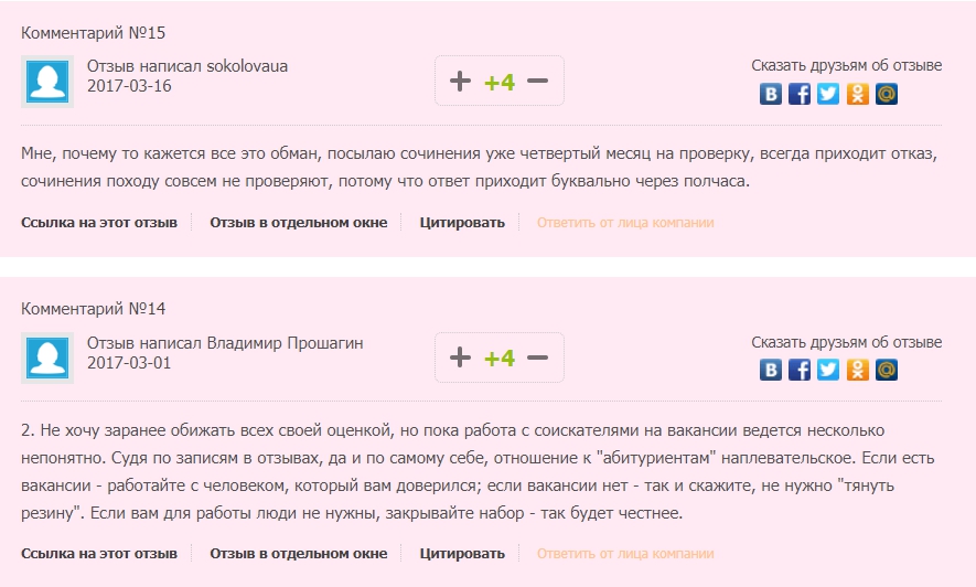 Как видим, есть и положительные, есть и отрицательные. Но недовольные отзывы об этом сайте связанны не с обманом или «киданием» на деньги, а с долгим рассмотрением резюме. Но это их право. К тому же, с большой долей уверенности могу сказать, что недовольные отзывы пишут попросту халявщики, которые даже тестовое задание выполнили спустя рукава, такие нигде не нужны и вечно недовольны! Это из собственного опыты сотрудничества с исполнителями по написанию текста.