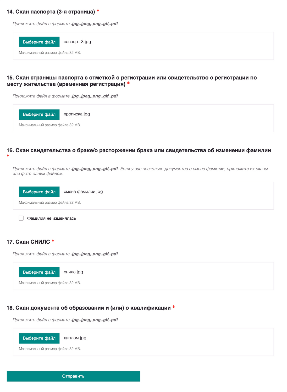 В конце анкеты нужно прикрепить сканы документов для проверки