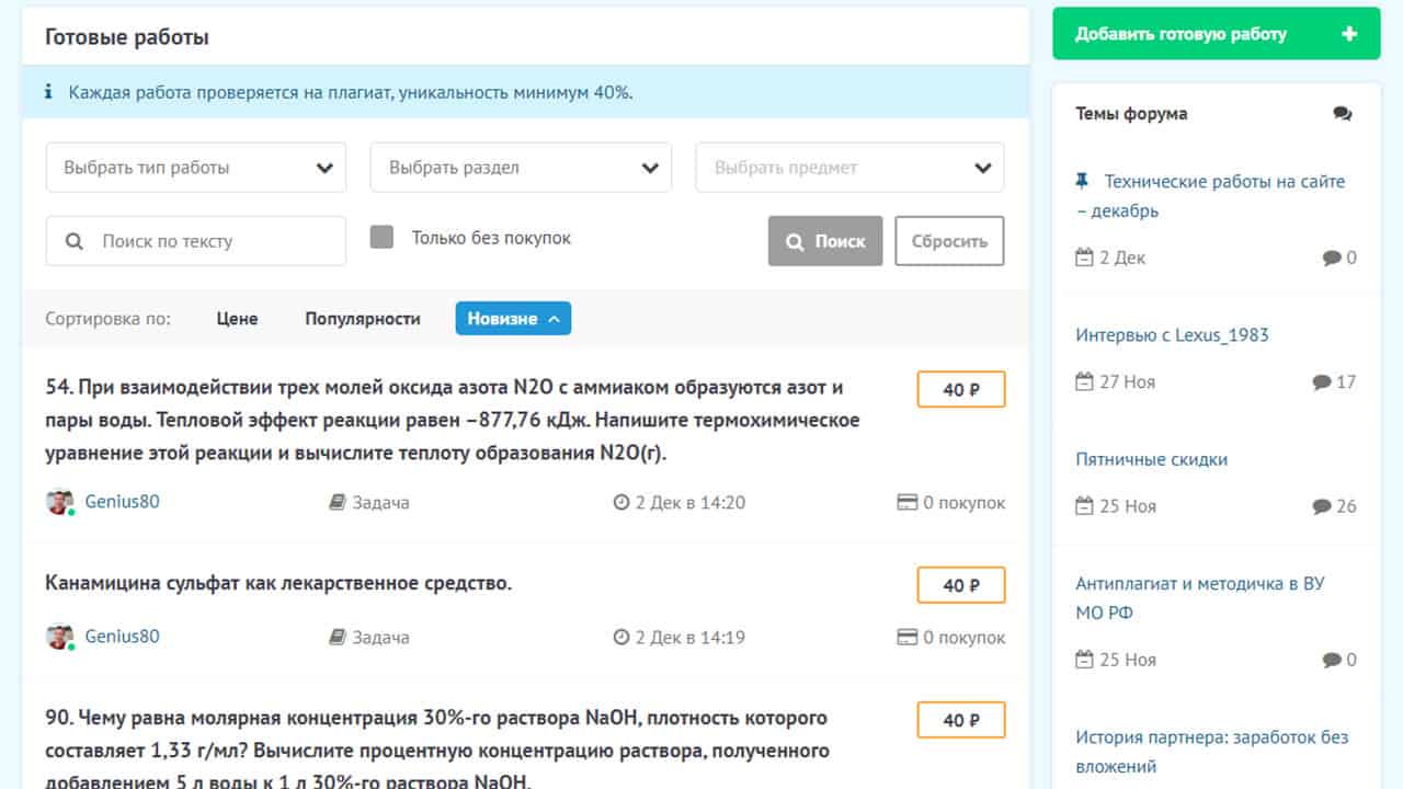 В рамках масштабного проекта по оказанию услуг населению Youdo.com в рубрике «Обучение» имеется раздел с предложениями по написанию контрольных, лабораторных, рефератов, дипломных, диссертаций. После выбора типа задания клиенту предлагается подборка потенциальных авторов-исполнителей с указанием специализации, рейтинга, перечня недавно выполненных заказов, запрашиваемой стоимости (зависит от объема, сложности и сроков) и откликами пользователей. Предлагаемый вариант сотрудничества напрямую имеет как плюсы (не нужно переплачивать посреднику), так и минусы (вся ответственность за содержание и оформление лежит на исполнителе). Тем не менее, судя по количеству представленных интеллектуалов-наставников и отзывов, сервис востребован.