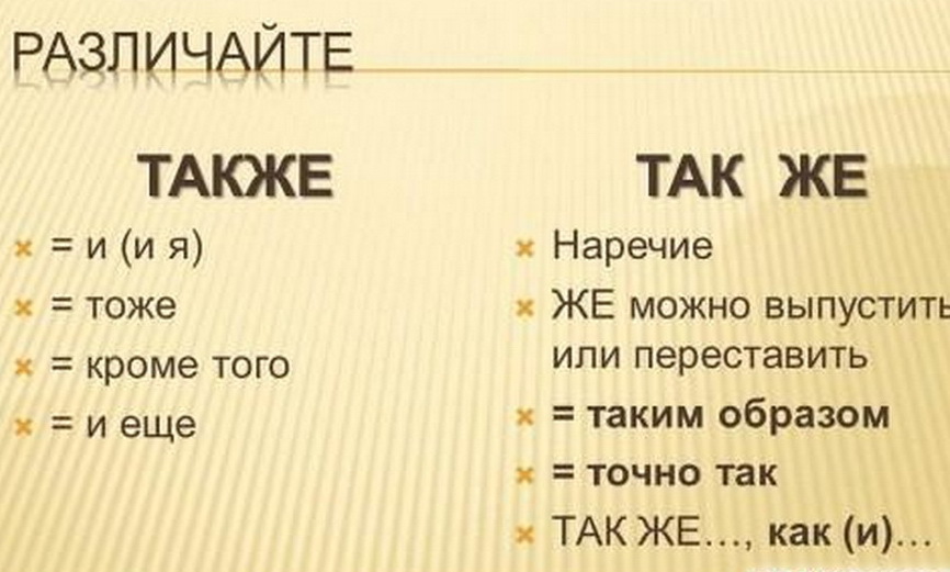 Слово ТАК ЖЕ, как писать – раздельное написание слов так же