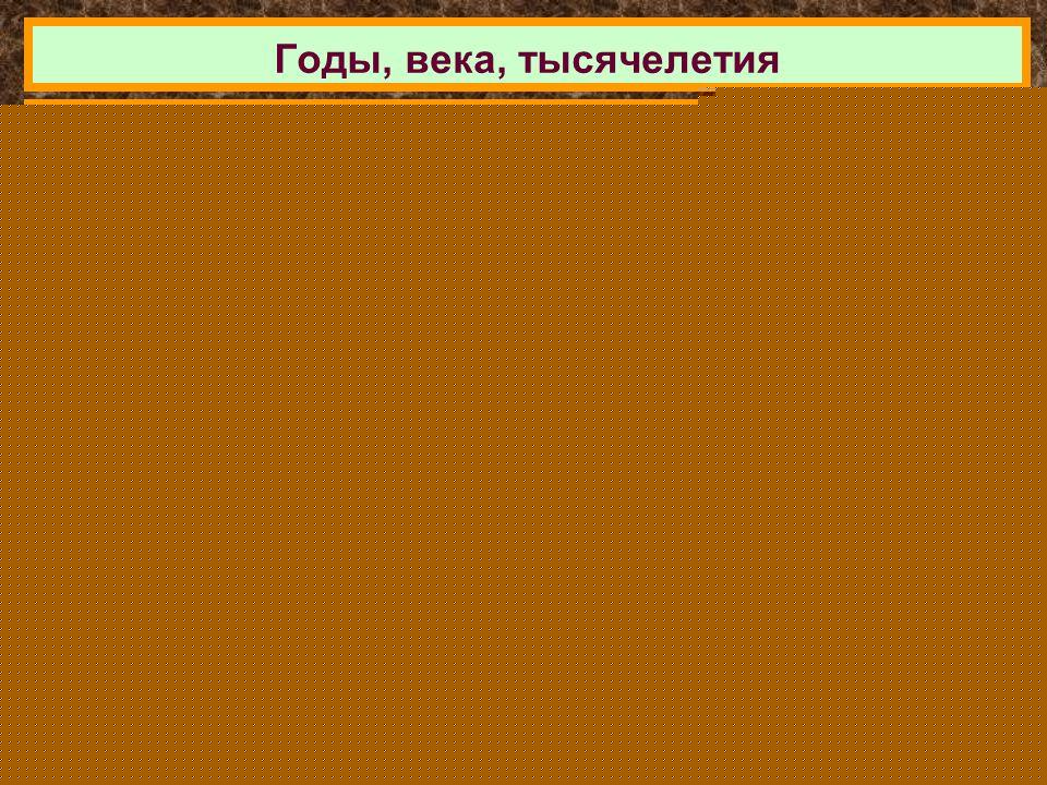 Для этого нужен счёт времени. Люди издавна считают время по годам, но в истории часто приходится пользоваться более длинными отрезками – сотнями и тысячами лет. Годы, века, тысячелетия