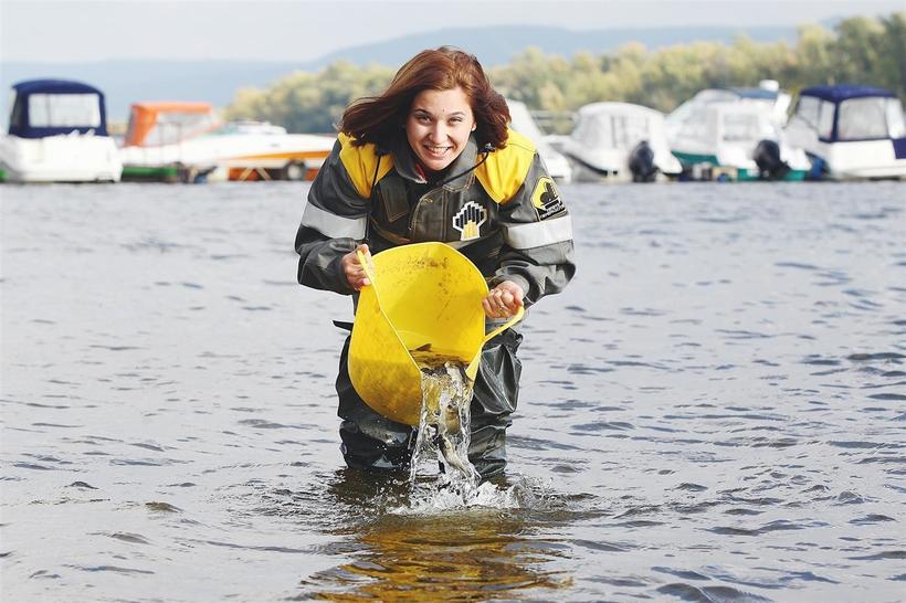 Можно запустить в реку специальные породы рыбы, которая очищает воду.