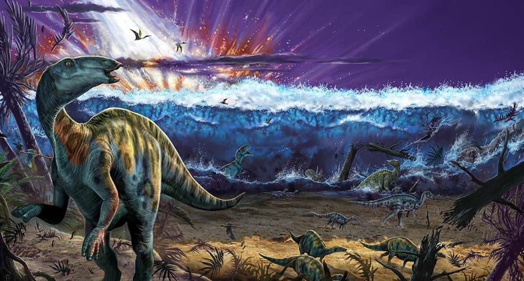 Часть флоры и фауны погибла непосредственно при падении небесного тела, также многие виды пострадали от последующих цунами и пожаров. А глобальные изменения климата (температура на суше упала на 28 градусов, а в океане – на 11) и концентрации кислорода привели к полному вымиранию ящеров.