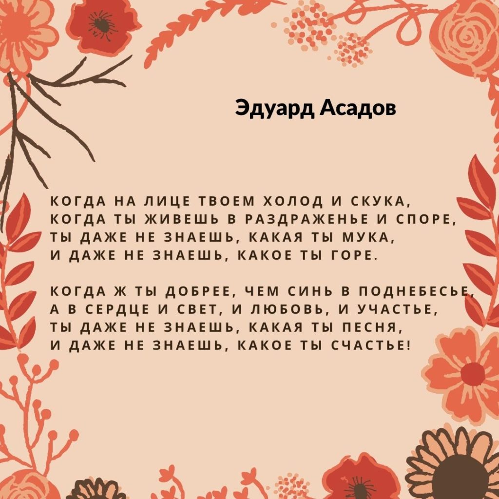 А сейчас возьмем Эдуарда Асадова. Другой ритм, другая лексика.