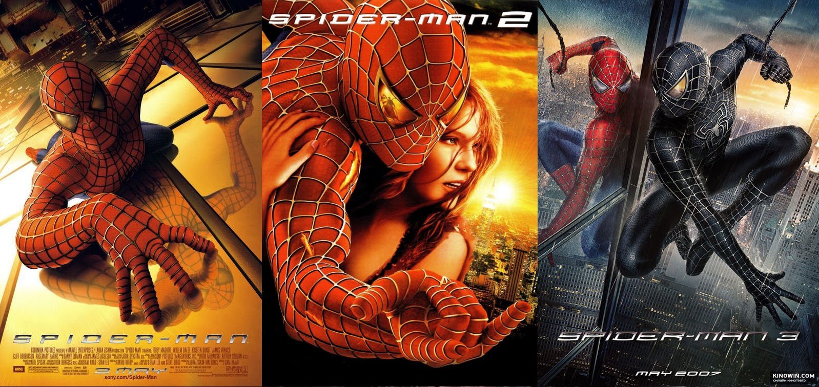 Первые три фильма снял режиссер Сэм Рэйми. Главную роль во всех фильмах сыграл Тоби Магуайр. Производством картины занималась студия Sony Pictures Entertainment. Впервые Человек-паук вышел на большие экраны в 2002 году. Картина произвела фурор и имела большое количество положительных отзывов. Затем через два года вышла вторая часть, а в 2007 – третья.