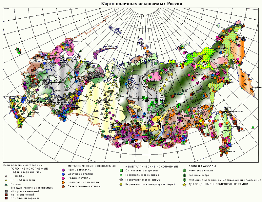 Более подробно места нахождения разведанных запасов минерального сырья можно посмотреть на карте полезных ископаемых.
