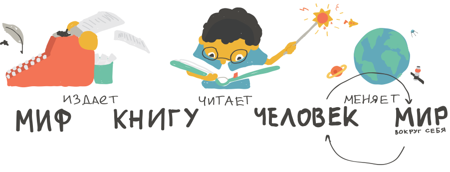 Издательство «МИФ» с помощью иллюстрации рассказывает о целях, миссии компании или отдельных проектах. Например, так они объяснили, зачем вообще издают книги: