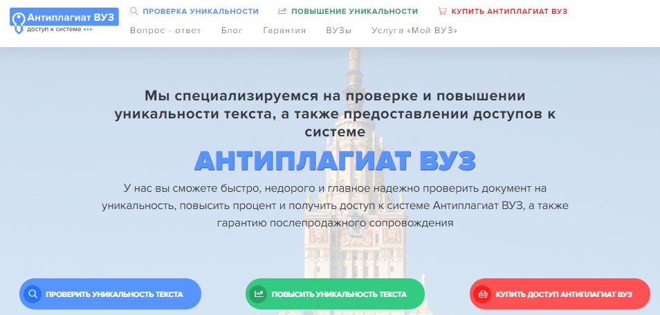 К тому же на нашем сервисе Антиплагиат-ВУЗ.рф, вы можете узнать, как самому обойти Антиплагиат ВУЗ. Также мы предоставляем услугу повышение уникальности текста. Всего лишь за пару минут вы сможете набрать 80-90% оригинальности без изменений в тексте.