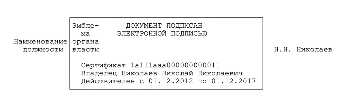 Вообще, в госте неполная информация об электронной подписи. Пример отметки выглядит странно. Там нет вида подписи, полномочий и названия удостоверяющего центра.